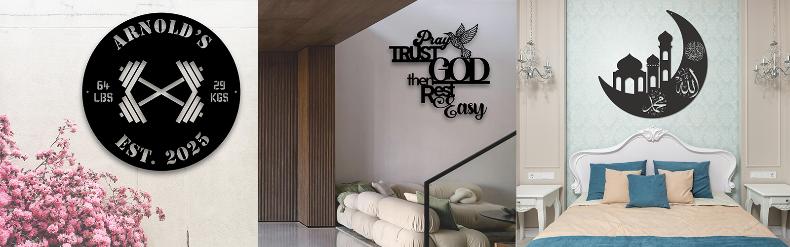 Crescent Moon Mosque Islamic Metal Wall Art – Allah, Muhammed, La Ilaha Il Allah | Elegant Muslim Home Decor